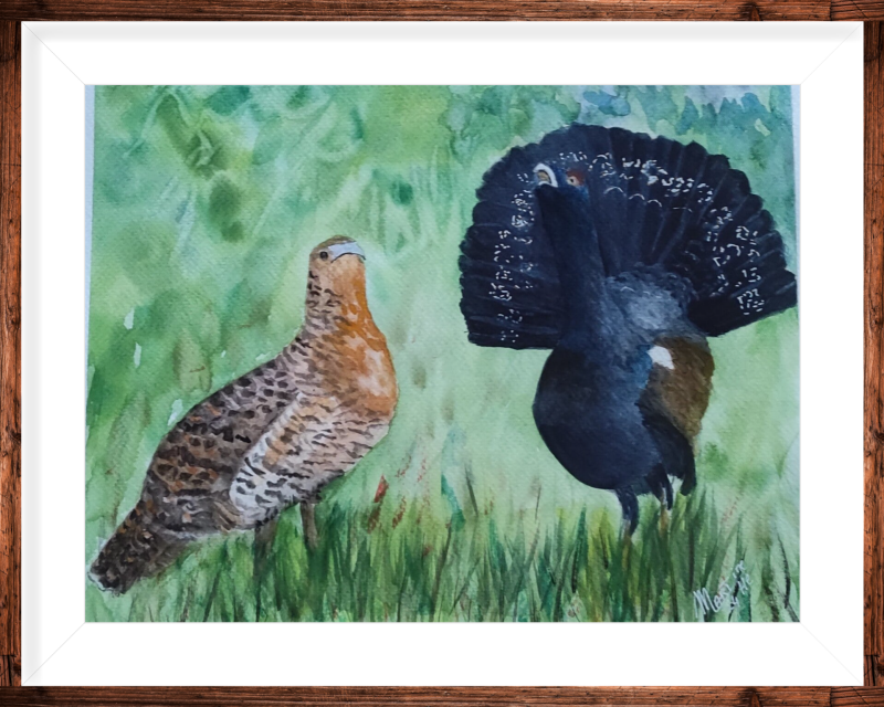 Le couple de Tétras Lyre, aquarelle 27 x 23