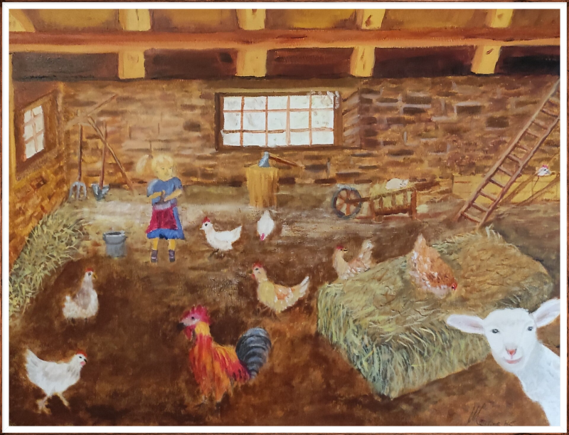 Dans létable toile encadrée huile 40 x 50 Fr. 260.--